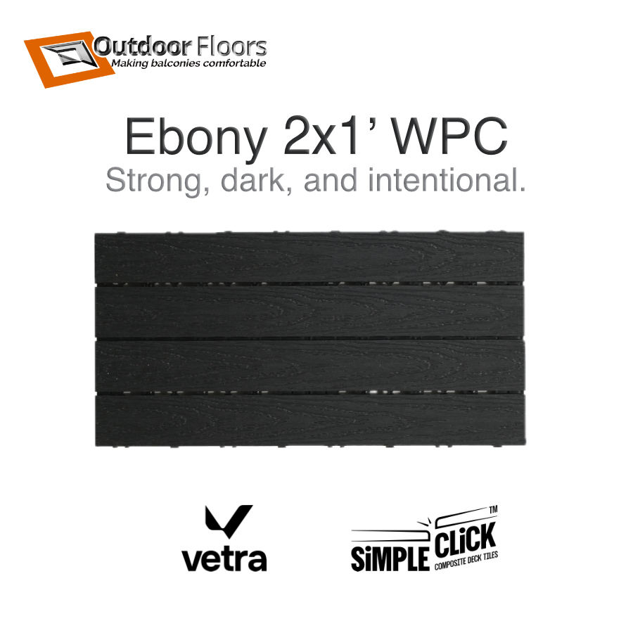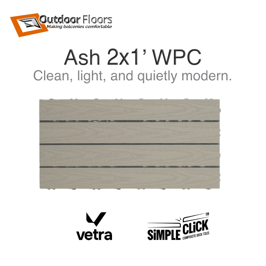 Deck Tiles Toronto — We offer a wide variety of interlocking composite (WPC) tiles manufactured by Vetra. Our SimpleClick deck tile selection offers an array of neutral colours: Ash, Silver, Teak, Walnut, and Ebony.